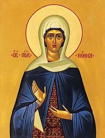 Мајката на Св. Григориј Богослов. Како христијанка имаше силна и чудотворна молитва. Така со својата молитва кон Бога таа го обрати својот маж од незнабожечката глупост во христијанската вера. Нејзиниот маж Григориј подоцна беше епископ во градот Назијанз. Света Нона своевремено со молитва го спаси и нејзиниот син Св. Григориј Богослов од бура. Се престави мирно како ѓакониса во 374 година.
