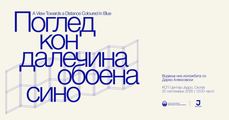 На 20 септември (сабота) во 12.00 часот ќе биде отворена изложбата „Поглед кон далечина обоена сино“ заедно со Дарко Алексовски во КСП Центар-Јадро.