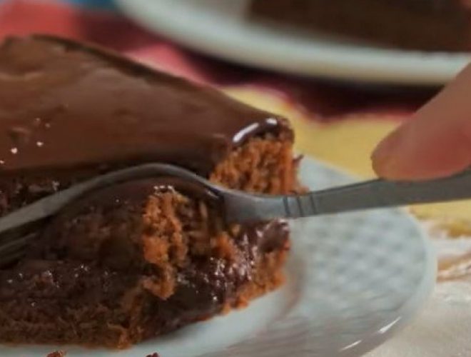 Измешајте брашно, какао, сода бикарбона и цимет. Соединете ја киселата вода со маслото, шеќерот и џемот, потоа додадете ги сувите состојки. Добро измешајте сè и половина истурете во намастен калап (33×22 см). Нанесете го џемот а врз него остатокот тесто. Добро израмнете. Печете го колачот во претходно загреана рерна на 200 степени околу 25 минути. Премачкајте го џемот врз врелиот колач. Растопете го чоколадото со масло, па прелијте го врз изладениот колач.