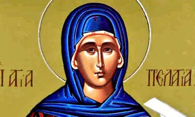 Светата преподобна Пелагија живеела во 5 век и потекнувала од Антиохија, еден од најголемите градови на тогашната Сирија. Пред да го познае христијанството, таа била прочуена по својата голема убавина и живеела распуштен и грешен живот, позната како позоришна актерка и блудница. Славата и богатството ѝ биле сè додека не ја допрела Божјата благодат.
