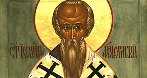 Патријарх Александриски. Роден е на осторвот Кипар во кнежевско семејство. Воспитан од детството како вистински христијанин. На настојување од родителите се ожени и имаше деца. Но по Божја Промисла се упокоија и децата и жена му. Прочуен заради милосрдието и благочестивоста, Јован беше избран за патријарх Александриски во времето на царот Ираклиј. Десет години управуваше со александриската Црква како вистински пастир, чувајќи ја од незнабожците и од еретиците. Беше пример на кротост, милосрдие и човекољубие. „Ако сакаш благородство“, велеше, „не барај го во крвта туку во добродетелта, зашто тоа е вистинското благородство“. Сите Свети се одликуваа со милосрдие, но Св. Јован ? беше предаден на оваа Света добродетел. Еднаш служејќи Литургија се сети патријархот на Христовите зборови: „Ако принесуваш дар на жртвеникот и таму се сетиш дека брат ти има нешто против тебе, тогаш остави го дарот таму, пред жртвеникот, па отиди и најнапред помири се со брата си, а потоа дојди и принеси го дарот“ (Матеј 5, 23, 24) и се сети дека еден од клириците е зловолен кон него; тој брзо ги остави Светите Дарови, му пријде на тој клирик , му падна пред нозете и го замоли за прошка. И дури кога се измири со човекот се врати пред жртвеникот. Еднаш пак одејќи кон црквата на Светите Кир и Јован се случи да го сретне една бедна вдовица и почна да му говори за својата беда. Придружниците на патријархот почувствуваа здодевност од долготрајната поплака на жената, па му рекоа на владиката да побрза в црква на служба, а жената би можел да ја слуша и после службата. Свети Јован им одговори: „А како ќе ме послуша мене Бог ако јас не ја послушам нејзе?“ И не сакаше да мрдне од местото дури не ја ислуша нејзината поплака докрај. Кога Персијанците удрија на Мисир, патријархот Јован седна во кораб за да се оддалечи од напаста. Патем се разболе и кога стигна на Кипар умре во својот роден крај, во 620 година. Неговите чудотворни мошти се пренесени најпрво во Цариград, а потоа во Будимпешта и најпосле во Пресбург.