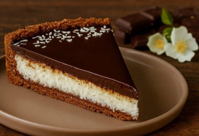 Доколку сте љубител на познатите Баунти чоколатца, овој тарт ќе ве освои уште од првиот залак! Богата комбинација од кокос, бело и темно чоколадо, сè во совршен баланс на вкусови, а најдобро од сè – се подготвува без рерна!