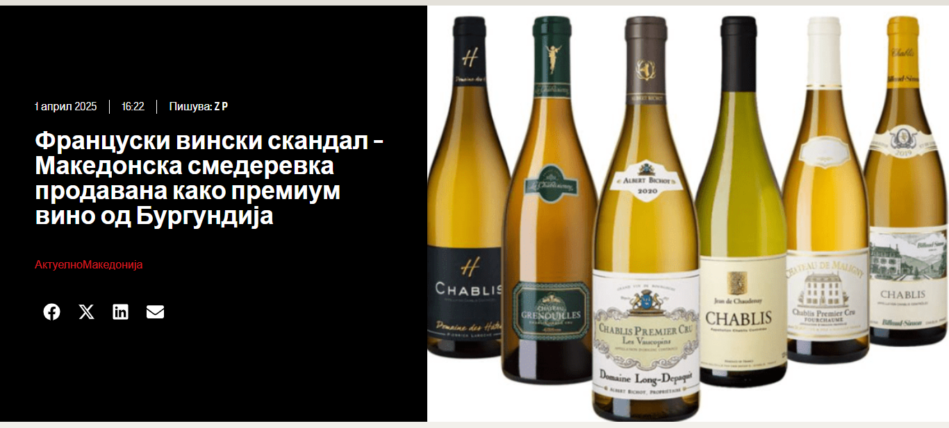 Принтскрин од еден од насловите во македонските медиуми за македонската смедеревка во Бургундија