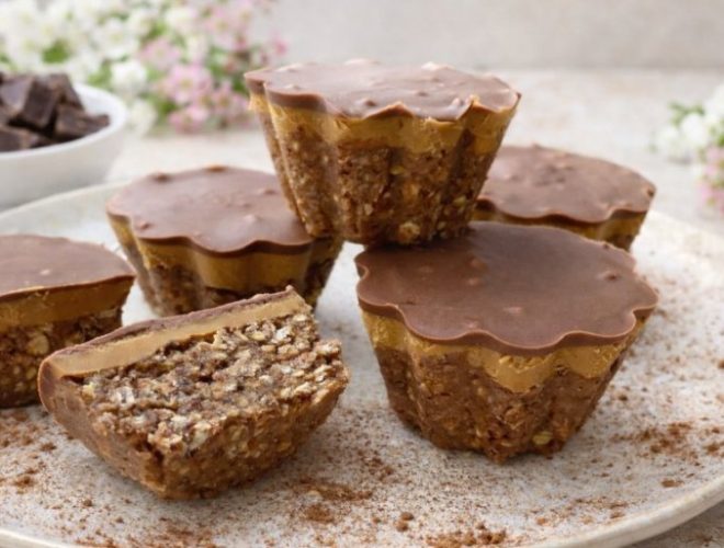 Комбинацијата од урми, јаткасти плодови, овесни снегулки и путер од кикирики, со завршен слој од темно чоколадо, дава совршена рамнотежа на вкус и текстура. Лесни за подготовка, без печење и идеални како здрава закуска или брза ужина.