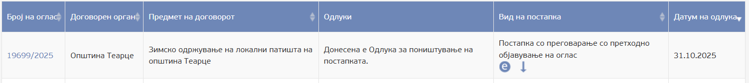 Иако Порталб.мк неколкупати се обрати до oпштина Теарце за податоци, таа ги игнорираше нашите новинарски прашања. Последниот договор за зимско оддржување на патиштата од oпштина Теарце е потпишан на 31.12.2024 година со Урбан План Констракшн во вредност од 1.200.000 денари без ДДВ.
