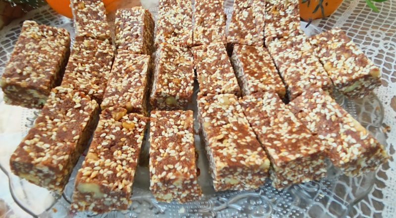 Дали сте подготвени за колаче кое е апсолутно неодоливо? Овие посни коцки не се печат, подготовката е неверојатно брза, а вкусот е богат и интензивен! Комбинацијата од малку препечен сусам, најфино чоколадо и ароматичен цимет им дава нота на која никој не може да одолее. Изгледа суво, но е совршено, само треба да биде добро избалансирано и изладено! Ова се коцките кои први ќе исчезнат од чинијата за слава!