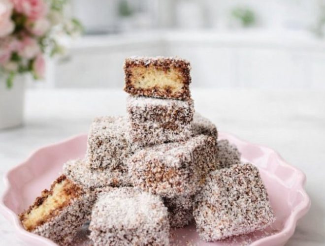 Загрејте ги водата, шеќерот и какаото во тенџере додека сè не се соедини, а потоа оставете малку да се олади. Исечете го изладениот бисквит на коцки. Потопете ја секоја коцка во преливот, а потоа во кокосовото брашно. Оставете да се олади целосно и преливот да се стегне.